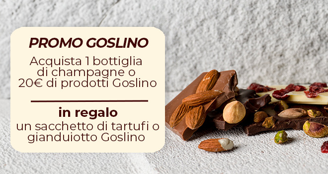…Le sorprese per San Valentino non finiscono qui! Per tutto il fine settimana approfitta della speciale promozione che abbiamo pensato per celebrare la festa degli innamorati! Acquista uno spumante oppure spendi 20€ di prodotti Goslino, per te subito in OMAGGIO un sacchetto di tartufi o di gianduiotti Goslino! Cerchi le coordinate della nostra degustazione?