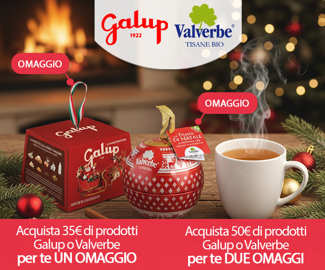 Preparati a vivere la magia delle feste con le nuove idee regalo per Natale, approfitta delle nostre promozioni e scopri i nuovi arrivi. Non perdere la speciale Promozione Galup e Valverbe, dove l’eccellenza dei panettoni incontra la qualità delle tisane con un fantastico omaggio: acquista 30€ di prodotti dei due prodotti e scegli un omaggio tra panettoncino e pallina di Natale con tisane… Se arrivi a 50€ invece avrai entrambi gli omaggi!