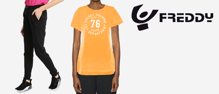 Freddy pensa da sempre alla comodità dell’abbigliamento sportivo, senza mai rinunciare allo stile e a tessuti di qualità. I comodi Leggings, ideali sia per lo sport sia per i look più casual nella vita di tutti i giorni, sono disponibili in diversi colori, dal blu e oro al grigio, dal nero all’arancione. Anche le Felpe sono pensate per diversi gusti ed esigenze: sono infatti disponibili in modelli con cerniera, con o senza cappuccio e con colori versatili come il grigio, blu, nero verde e marrone. Infine, le T-shirt Freddy sono ideali per le sessioni in palestra e per le passeggiate in compagnia. Disponibili in diverse combinazioni di colori, le T-shirt si adatteranno al tuo stile e ai tuoi look.