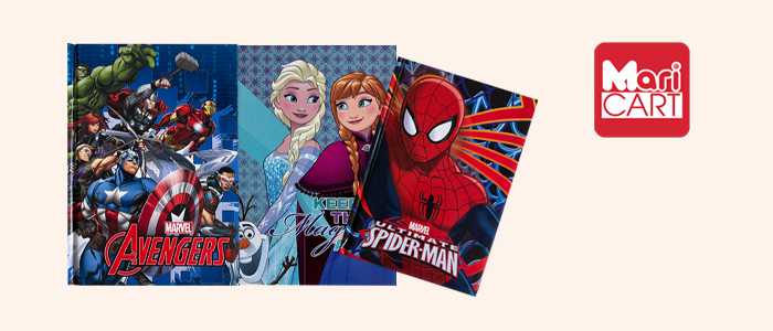 Elsa e Anna di Frozen e Violetta sono le compagne di banco ideali per le giovani principesse; Ultimate Spider-Man e gli Avengers sono perfetti per i piccoli eroi, per un anno di grandi avventure.