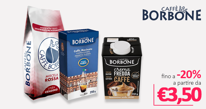 SOLO PRESSO IL NEGOZIO DI CERNUSCO S/N – Scopri i nuovi arrivi firmati Caffè Borbone: la crema Caffè è la novità di Caffè Borbone per offrire un break fresco e veloce al gusto caffè. Crema a base di latte con caffè solubile delattosata. La consistenza vellutata del latte e della panna incontra il caffè dando vita ad una crema unica e irrinunciabile. Da gustare quando vuoi e dove vuoi. UHT a lunga conservazione. La miscela Nobile si caratterizza per il suo sapore nobile, il carattere vigoroso e l’aroma intenso. La nuova confezione di caffè macinato ha un sacchetto morbido dotato di valvola salvaroma. Con questo nuovo sistema viene garantita la massima fragranza del prodotto, macinato e appena tostato, confezionato in atmosfera protettiva, senza lasciare evaporare prima gli aromi, come normalmente si fa con i sacchetti rigidi. Il caffè in grani Miscela Rossa è il caffè ideale per chi vuole una carica di energia grazie al suo carattere deciso e al suo gusto intenso. Solo i chicchi più pregiati diventano Caffè Borbone, provare per credere.