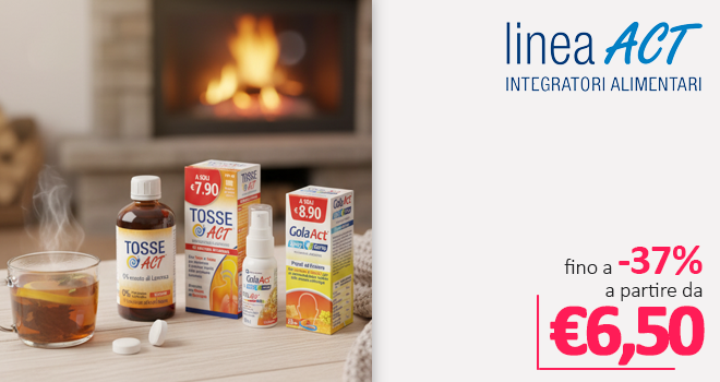 La stagione fredda è alle porte e il tuo organismo ha bisogno di un supporto extra per mantenere alte le difese. I prodotti Linea Act sono qui per aiutarti ad affrontare l’inverno al meglio! Una selezione mirata di integratori per le difese immunitarie a base di Vitamina C e Zinco, formulazioni specifiche per il benessere delle vie respiratorie e complessi multivitaminici per combattere la stanchezza e l’affaticamento tipici del cambio di stagione. Linea Act offre una gamma completa di prodotti pensati per darti la carica necessaria, supportare il tuo sistema immunitario e mantenere il tuo corpo forte e vitale in vista dei primi freddi.