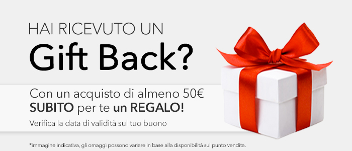 • Gift Back dà diritto a ricevere un prodotto omaggio a fronte di un acquisto di almeno € 50,00