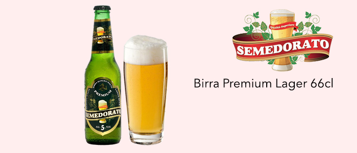 La Birra Lager Semedorato è sottoposta a una bassa fermentazione che permette alla Bionda di mantenere un gusto pieno e aromatico con un delicato e non troppo persistente retrogusto amaro. La Birra Semedorato di puro malto si presenta con colore giallo paglierino e schiuma compatta e persistente, il grado alcolico pari a 5% vol inoltre la rende ideale da abbinare a pasti ricchi di carboidrati come pasta e pizza. Ottima se servita ad una temperatura di 5-6 °C.
