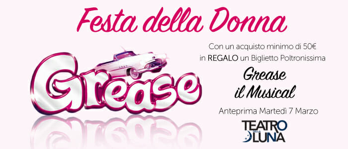 • A fronte di una spesa minima 50€, in omaggio un biglietto per l’anteprima Grease il Musical;