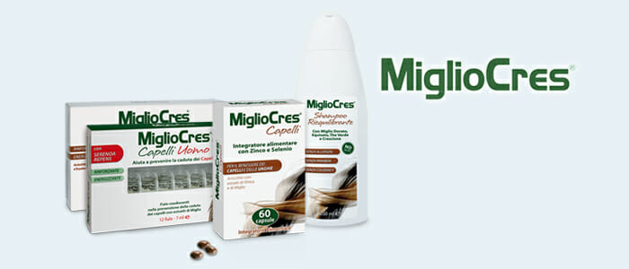 MiglioCres Capelli per Uomo è un integratore alimentare, notificato al Ministero della Salute, per tutti i problemi di capelli: caduta, debolezza, mancanza di fibra e vitalità. Utile anche per la salute e la robustezza delle unghie.
