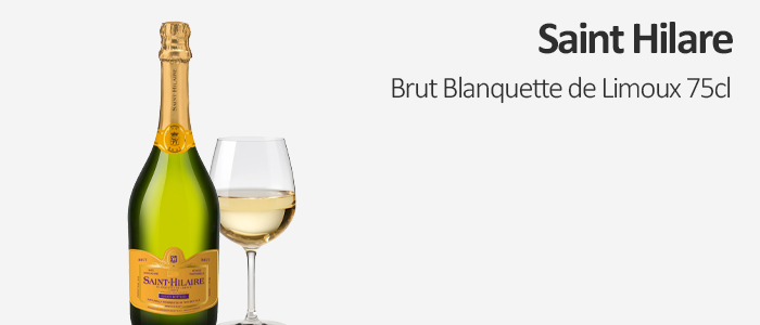 • Saint-Hilaire Brut Blanquette de Limoux 75cl: Nel calice ha un colore giallo paglierino carico e un perlage minuto e persistente. Al naso prevalgono sensazioni fruttate di pesca bianca, affiancate da sentori di biancospino e garofano bianco. Conquista il palato per la sua indomita freschezza e una grande vivacità. Ideale come aperitivo e per ogni occasione importante.